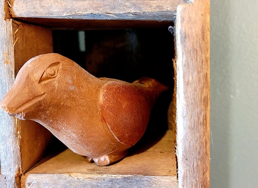 We used to live inside the orbit of all those old hex signs on the barns and whispers of this or that granny woman and what folks remember of how she used to heal. Our defunct dairy farm straddled a stretch of Sunday Creek and in that place my husband and I liked to sit on the back porch making plans for the crumble down barn on our stretch of the banks. We thought it would be idyllically pastoral to hang one of the old charm signs over the hayloft. My favorite was the good luck distelfinke, which is a stylized bird with a red feather coming out of the top of his eye that makes you think of quail. There is a curving fretwork of blue feathers down his neck like an echo of fish. The wings are a yellow plumage of jagged lightning folded close against the body. The distelfinke often perches atop a tulip that means faith but opens out petals like a kiss.